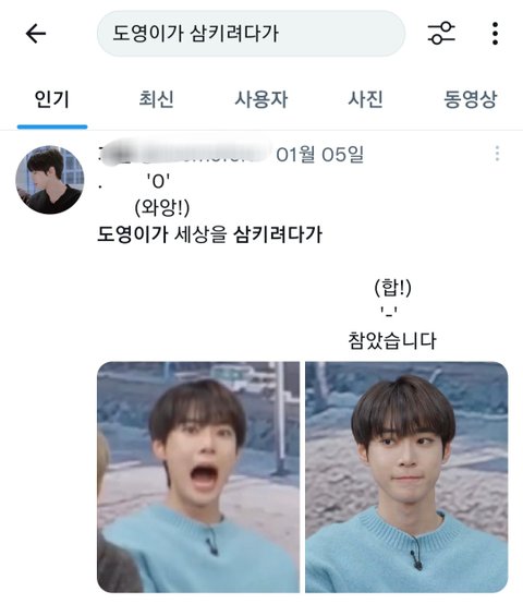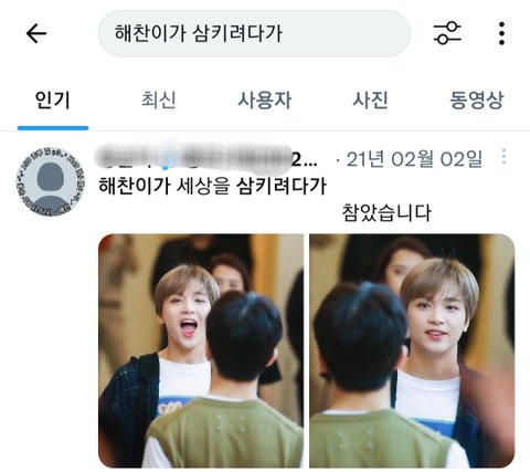 멤버이름 + 삼키려다가 서치하면 귀여운거 엄청나온다