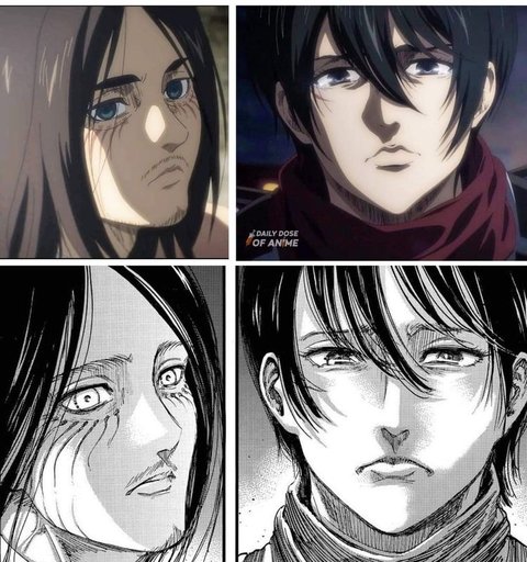 원작은 슬퍼하는 미카사 보고 에렌도 맘 아파하는 복잡미묘한 표정인데 애니는 걍 동태눈깔로 쳐다보는것같음 지메가 사람 표정을 잘 살리긴하네