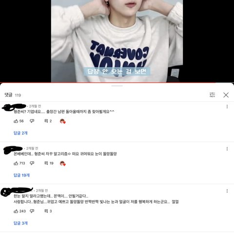 이런.. 좀 뇌절성 댓글 유튭에 조카 많음 타돌 영상에서 지들끼리 정모하고 유쾌한척..