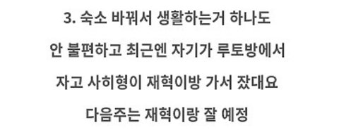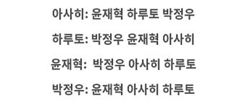 처음엔 이 조합 굉장히 좋아했는데 너무 맨날 같은 조합이고 점점 기분이 좀 이상해 이 떡밥 어제 대면팬싸맞아?평소였으면 팬들이 여기저기 퍼가서 엄청 앓았을 떡밥인데 은근히 먹금하는게 느껴지는것도 아마...처음엔 하루토 아사히가 둘이 솔메이트처럼 그런 관계였던걸로 아는데 거기에 하루토 동갑즈 절친 정우 아사히 동갑즈절친 재혁이가 같이 숙소에서 살면서 넷이 친하다 각별하다는걸 팬들에게 많이 티내기 시작하더라고 트맵에서 시골갔을때 무슨 꿈의조합?그 이후로 팬들도 이 조합에 더 집착하고 본인들도 아는지 더더 어필하고 남자들사이에서 무리생기고 서열생기면 팬들이 가장 먼저 눈치채는데 솔직히 좀 불안하다 조합이런건 팬들이 아주 작은 떡밥도 열배로 키우면서 앓고 그래야 재밌는건데 대놓고 더 친하고 무리 생겨서 생기는 떡밥은 ..