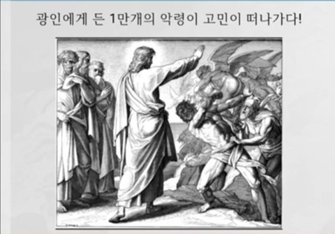 (주품이 주: 악령이 든 그 사람은 평소 광인처럼 명확한 발음으로 소리 지르건 아닌거 같다. 예수님을 보고는 살기 위해 겨우 잘 발언을 하였을 지언정 원어에서 말하는 이런 깍깍되는 소리는 무당방언하는 여자 마법사가 쓴다하며 한국으로는 무당들일 것이다. 이런 깍깍 소리는 한국 교회의 무당방언 소리와 유사하다. 이런 문화가 교회나 당시에 들어 왔기에 주님은 너희는 이방인과 같이 중언부언하지 말라 하신 것이다. 또 고전 14장의 방언은 국어 사전상 열방의 언어 외국어를 의미하고 헬라어 원어상 글로사로 외국어를 의미한다. 이런 외국어를 하나님이신 예수님이 금하신 무당방언으로 아는 한국교회는 치명적 오류를 범하는 것이며 악령이든 무덤 사이의 광인처럼 본인과 교회를 병들게 하는 것이다. 광인은 예수님을 온전히 믿고 그 깍깍 소리를 금하고 온전한 언어의 기도의 사람이 된 것이다. 무당방언의 사람이 온전히 예수님을 믿고 발음이 정확한 사람이 된 것을 유념하자!)