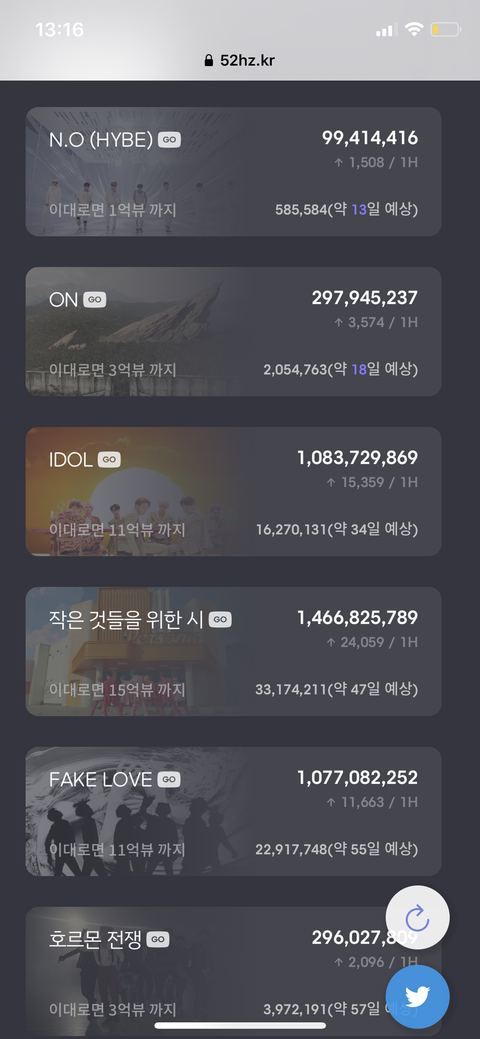 이제야 제대로 보는데 대략 며칠 후에 억뷰 달성하는지도 알 수 있고 GO누르면 유툽이랑 연동되고 진짜 최고야........