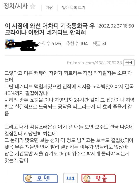 펨코 상주중인거 진짜 끔찍하다~ 여자표는 필요없다더니 이제와서 여초 밭갈이?ㅋㅋㅋ급하긴 하나보네