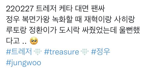 정우 복가 촬영할때 숙소멤들이 도시락 싸줬대 트레저 ㄱㅇㅇ