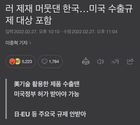 러시아 수출 제재 말로만 하다가 미국이 동맹국 중 우리만 수출 통제 했음 진짜 이래도 문재인이 친중 빨갱이 아니냐고 ...