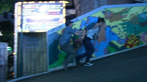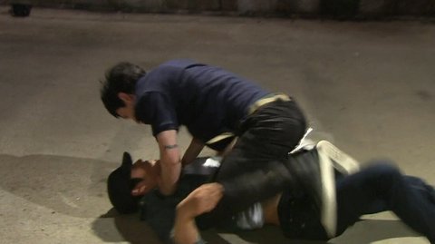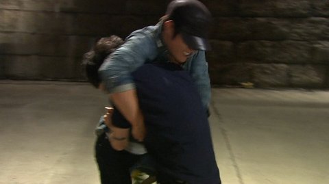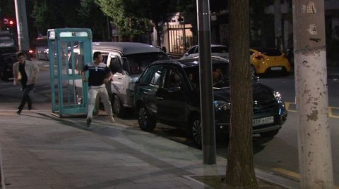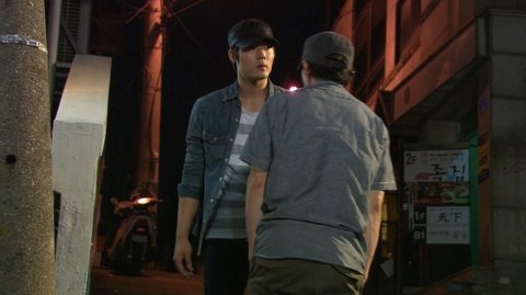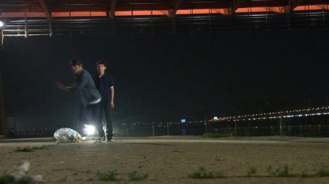 잠복을 시도하는 문기와 수사관