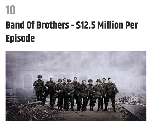 10위 밴드오브브라더스 (HBO, 회당 약 125억)