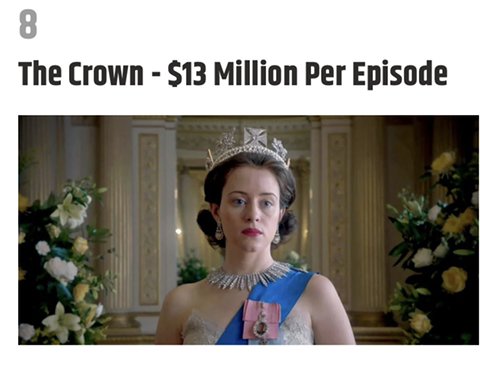 8위 더 크라운 (넷플릭스, 회당 약 130억)