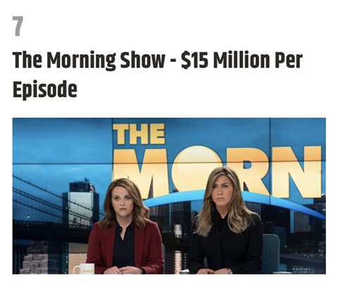 7위 더 모닝쇼 (AppleTV+, 회당 약 150억)