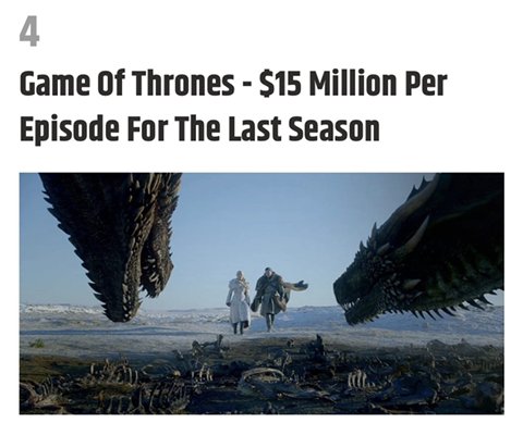 4위 왕좌의 게임 (HBO, 회당 약 150억)