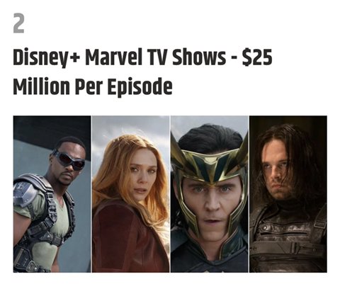 2위 디즈니 플러스 마블 티비 시리즈 (약 회당 250억)