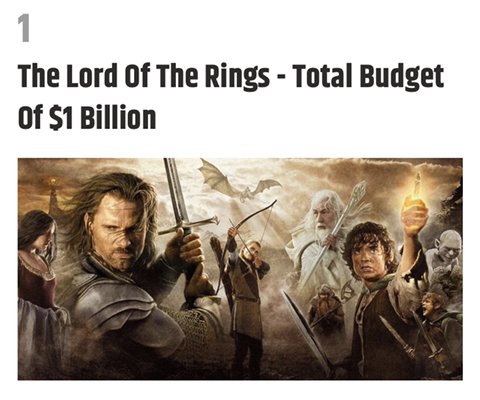 1위 반지의 제왕 (Amazon, 총 제작비 1조원)