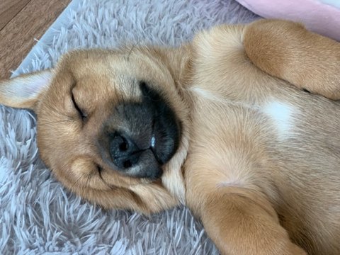 럭키 편하게 자라고 햄토리로 쭈쭈를 가려주었어요.