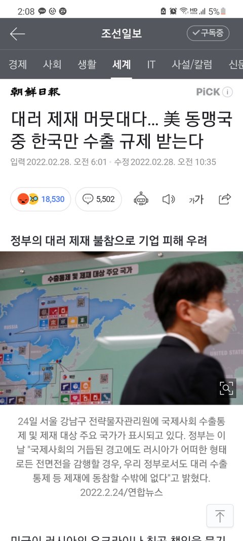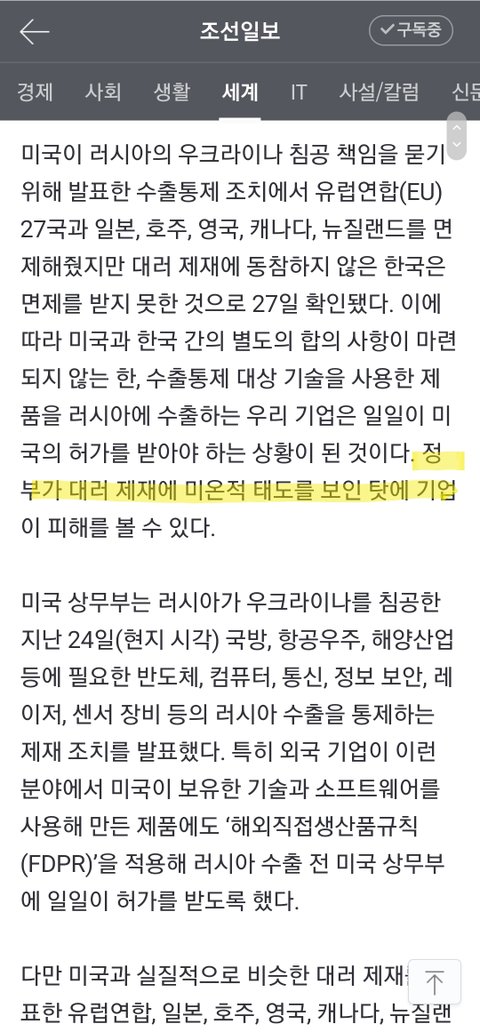 지금 우리나라 정부에서 러시아 규제 전혀 안하고 말로만 계속 유감표현해서 미국에서 우리까지 제재할 거래