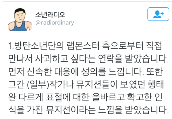 알엠이 표절 사과한건 잡아줘 가사밖에없고 당사자는 사과 받아줬는데 범죄자 ㅇㅈㄹ하는건 좀 웃기네