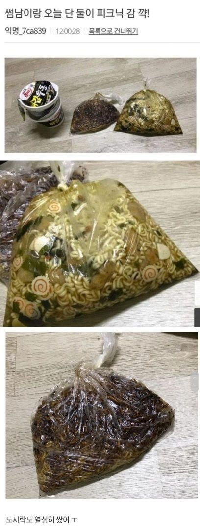 대체 어떻게하면 조리된 라면을 포장할 생각을하냐