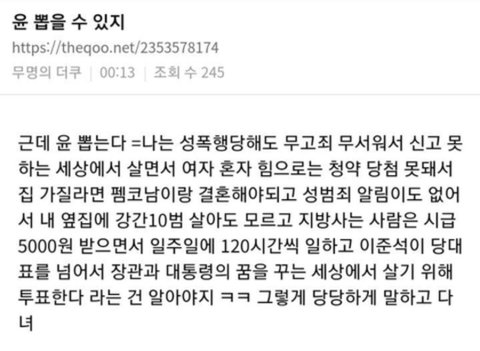 이런상황에 이재명이 윤보다 여성국민의 인권을 더 챙긴단 얘기도 못하게하는건 누굴 위한거?