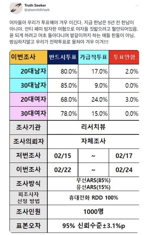 여혐팔이로 표몰이한 윤석열이 당선되면 여혐도 여성대상 범죄도 심해질게 뻔함
