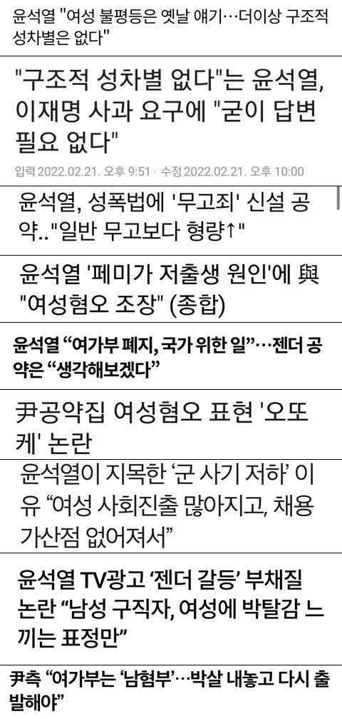 윤석열은 그와중에 여혐 부추기고 성별갈라치는거 말고는 아무것도 한게 없음ㅋ
