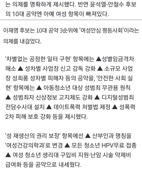 그리고 윤석열, 안철수와는 달리 10대 공약에 여성을 포함시켰음