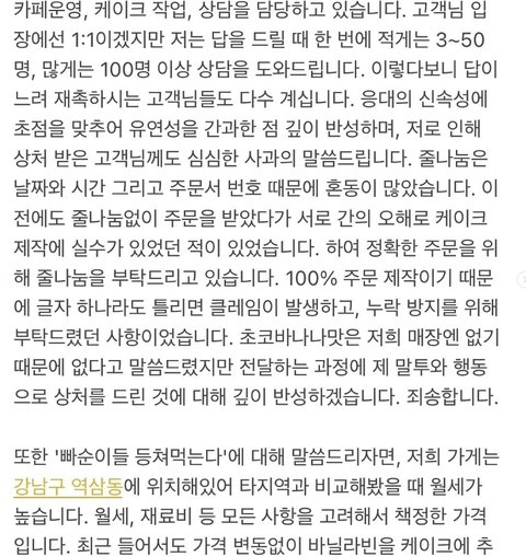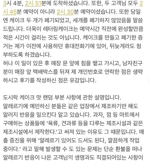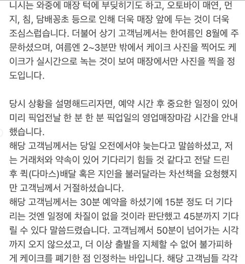 픽업시간 늦어서 케이크를 폐기 시켜버린 카페 입장문