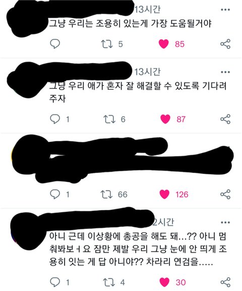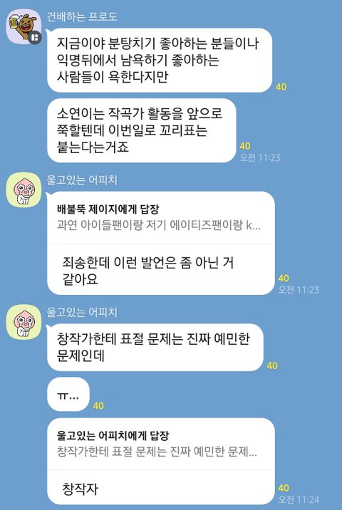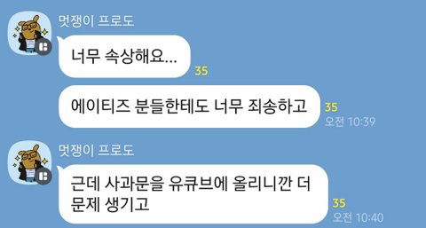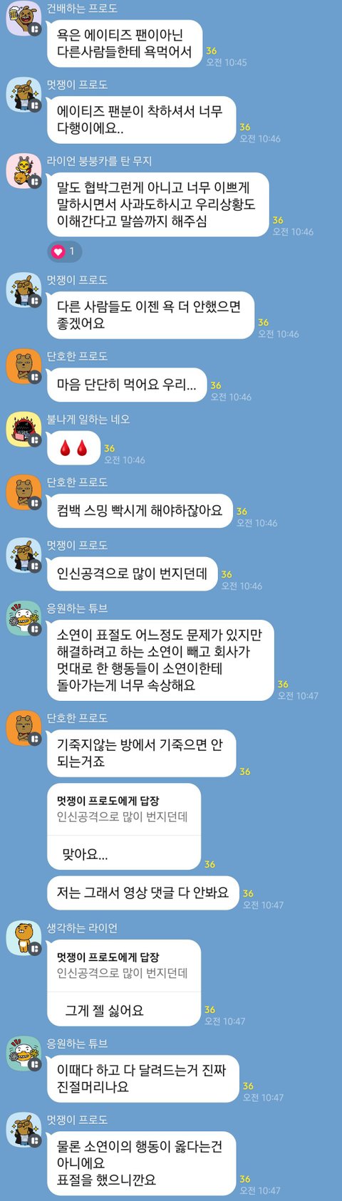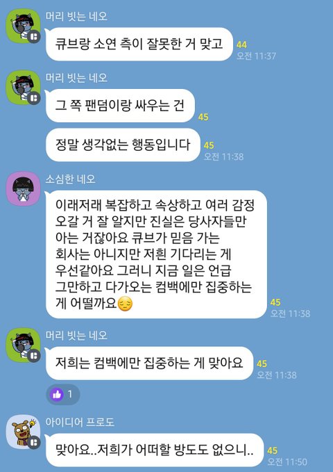 대부분의 팬들 반응이야 팔로우 수 많은 네버버 계정+안고독한 아이들방 반응 다 따왔어 자꾸 다른 곳(유큐브)에서 이상한 댓글만 쏙 가져와서 잼민랜드 쉴드 친다 이러길래 조금 억울해서