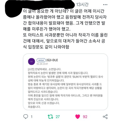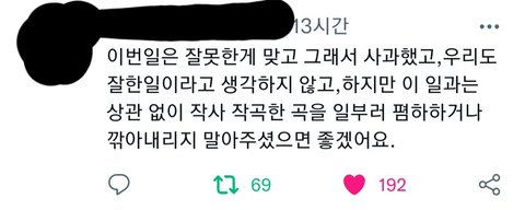 +네버랜드가 먼저 에이티니 까놓고 왜 억울한척 하냐는 글 보여서 추가글 쓸게 우선 그거에 대해 할 말은 없어 상황 늦게 안 사람들도 많고 해시총공 했다는거에 경악하는 사람들도 많지만 어떤 네버버가 했다는 사실은 지워지지 않는거니까 진짜 미안하게 생각해