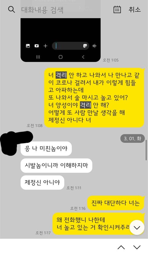 2. 전남친 코로나 양성으로 2월27일부터 3월4일까지 격리 기간인데 2월28일 지역 이동하고 사람 만나서 놀고 있음.
