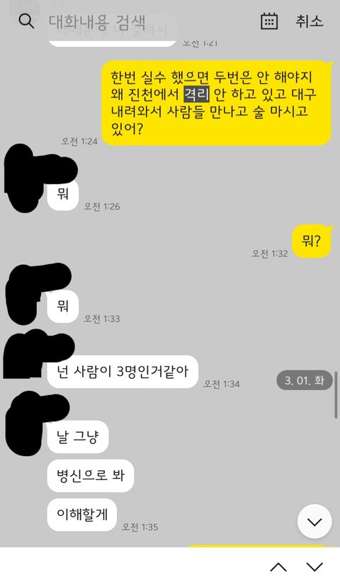 그런데 어제 28일 -> 3월1일로 넘어가는 새벽에 전화와 카톡이 왔어요.