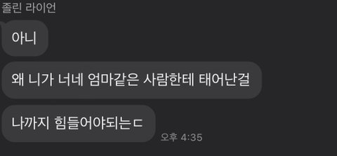거기에 남자는 '아니, 왜 니가 너네 엄마 같은 사람한테서 태어난 걸 나까지 힘들어야 하는데' 라고 말했어