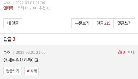 앤써는 흔한 노래제목이라고 댓글 달았는데
