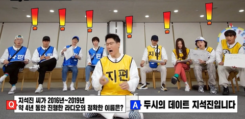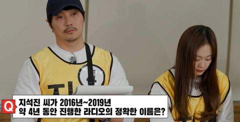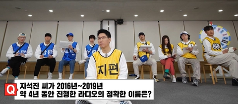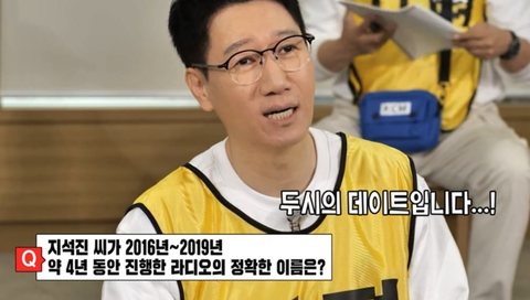 지석진이 약 4년동안 진행한 라디오 프로그램명이 퀴즈로 나옴