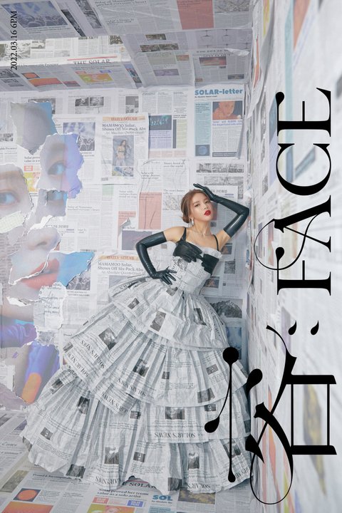 사진에과 영상에는 '용 : 페이스'라는 앨범명처럼 솔라의 얼굴을 클로즈업한 모습이 담겼다. 솔라의 눈, 코, 입 부근의 매력점까지 또렷하게 보이는 가운데, 통통 튀는 옐로우 스타일링이 솔라의 화사하면서도 세련된 분위기를 배가해 눈길을 끈다.