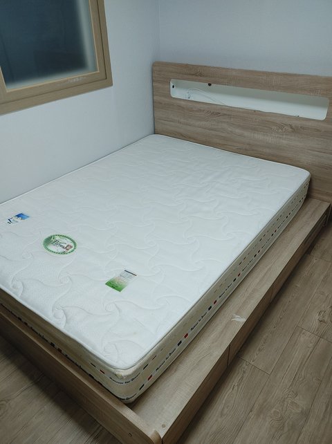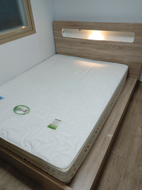 퀸사이즈고 LED 전등 들어 오고 220V 전기코드 꼽는데랑 USB 선 꽂는데 있고 아래 옆에랑 매트 아래 수남공간도 있는데 어때?ㅋ