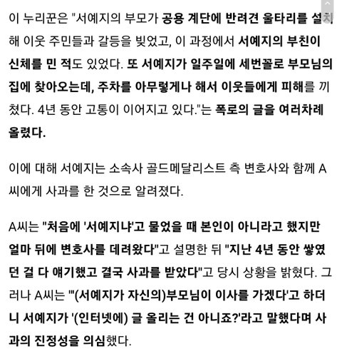 [단독] 서예지, 주차문제로 이웃과 갈등.."사과하고 원만히 해결했다"