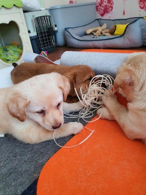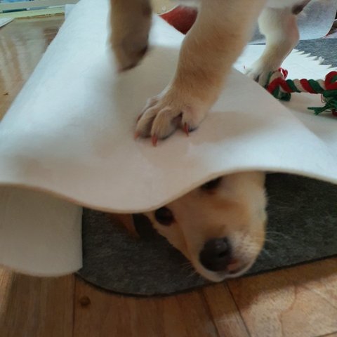 실타래껌을 줬더니 한참을 가지고 노네요.