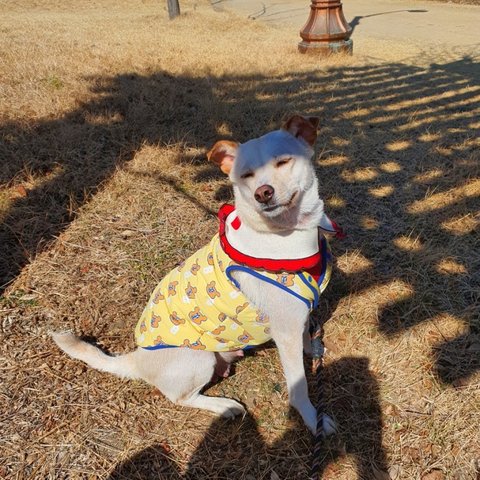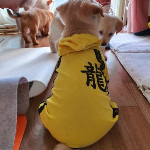 노란 이소룡옷은 노랑이에게 입혀줬어요.
