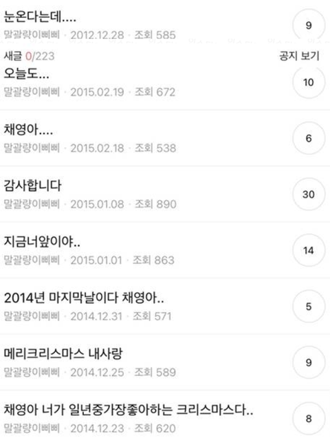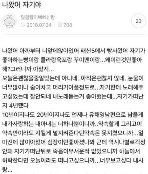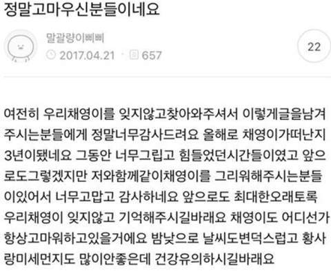 유채영님이 생전 너무 소중하게 여긴 팬카페에