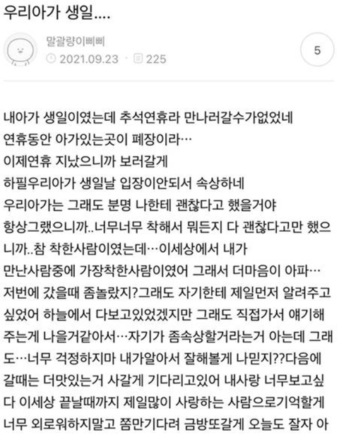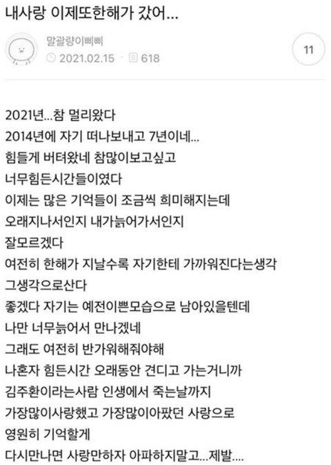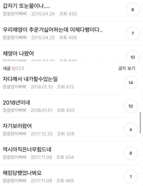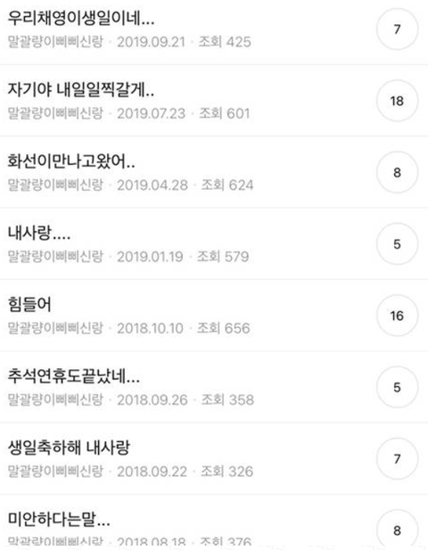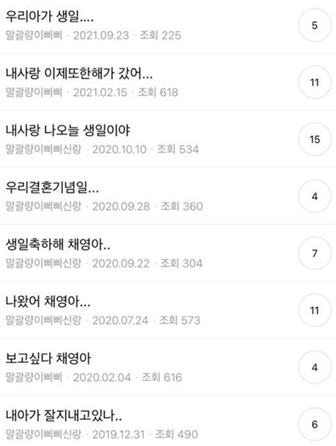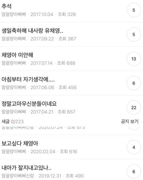 마지막글은 2021년도 9월로 유채영님의 생일을 맞아서 쓰셨음..