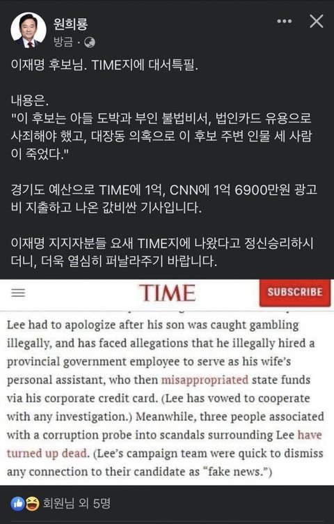 이재명 지지자들이 자랑스러워 하는 타임지 인터뷰