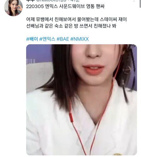 스윗인데 뮤뱅때 엔믹스분들이 엄청 방방 뛰면서 귀엽데 축하해주셔서 넘 감사했어ㅠㅠㅠㅠ따수운 짱믹스분들…ㅜㅜ게다가 친근하게 인사 나누길래 친분이 있는 건가해서 신기하고 넘 반갑고 조았는데 이런 비하인드가…좋아서 기절…노래 잘 듣고 있어 짱믹스 응원할게!!! 혹시 이간질하는 댓글이나 어그로 댓글 달리면 먹금 좀 부탁할게..ㅜㅜ 스윗도 먹금!!!!