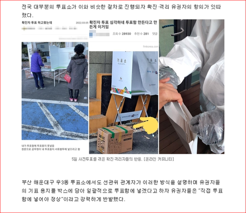 민주주의 처음 도입해서 투표 처음 치루는것도 아닌데 정부랑 선관위에서 확진자들 투표 관련해서 준비 하나도 안해서 이런 대참사 벌어진듯. 기본적으로 투표함은 밀봉되어 있어야 하고 또 투표자가 직접 넣어야됨. 그래야 외부에서 투표에 영향을 끼치거나 개입하거나 일을 막을 수 있으니까. 공정하게 선거 관리감독 해야할 선관위가 자꾸 ㅂㅅ짓을 하니까 이상한 음모론들이 나오고 사람들이 불신하는거지