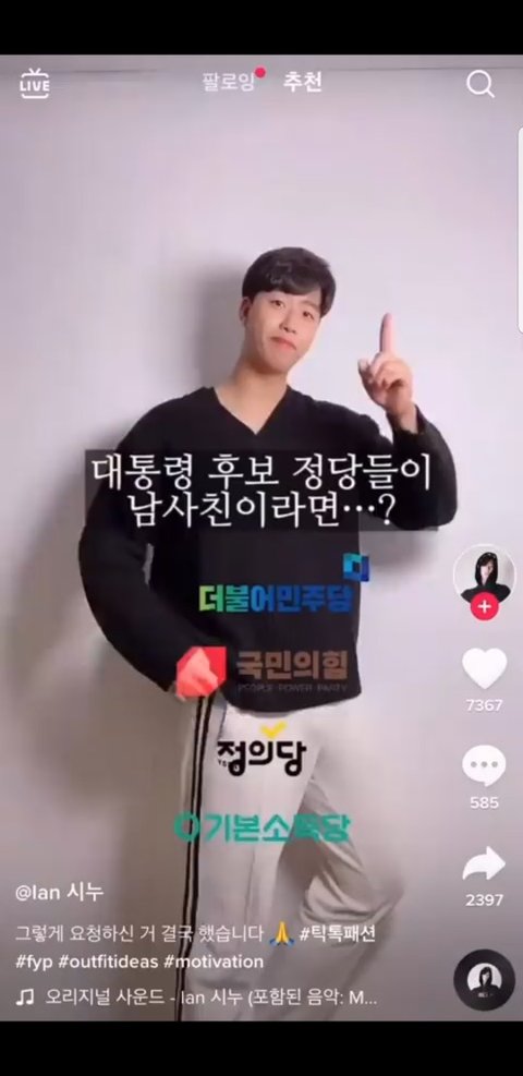 안녕 난 틱톡커 시누님의 팬이야♡ 시누님이 각 정당별 이미지를 패션으로 표현해주셨어 다들 자기 정치성향을 드러낼때 쓰면 좋을것같아♡