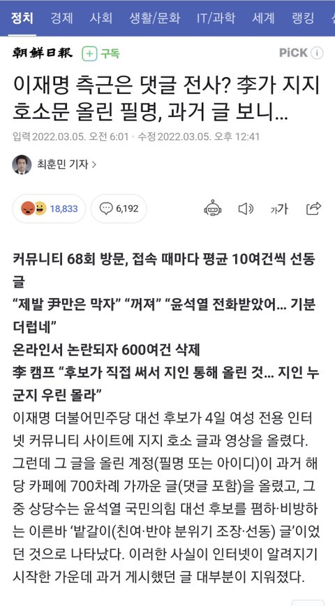 여초 사이트 유저들 분노해서 원래는 우파가 먹은 네이버 기사 댓글 뒤집어 놓음