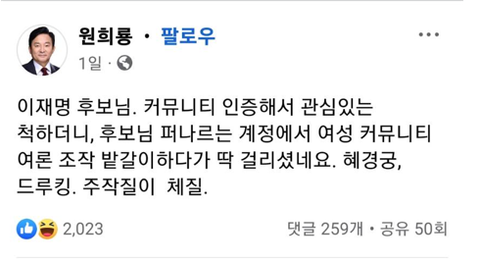 근데 또 이걸 물고 국민의 힘 당대표 이준석이랑 의원 원희룡이 혜경궁씨, 드루킹을 언급하며 sns에서 저격함