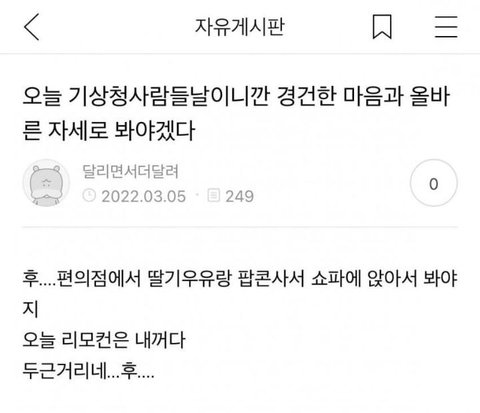 아래는 글 작성자가 평소에 작성한 글인데, 보면 알다싶이 커뮤니티 사용자 중에서도 깨끗한 욕 한번 안한 03년생 그냥 너무 일반인임...