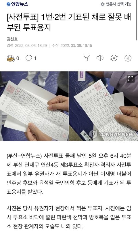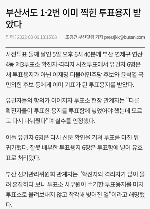 둘다 기표되어있었다는데 왜 이재명것만 갖고 오지 웃기네 ㅋㅋ