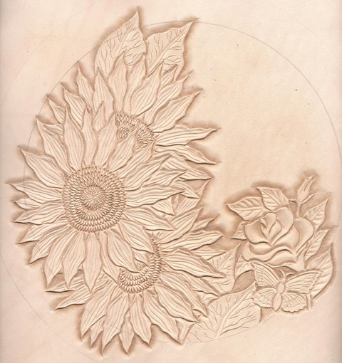 가죽 공예-해바라기와 장미 카빙