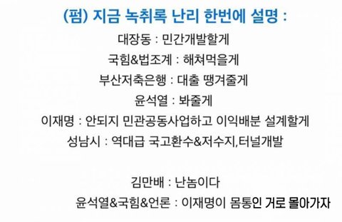 뉴스보면 대장동에서 10개의 문제 터진다고 가정했을때 9개는 이재명쪽이고 1개는 윤석렬쪽 문제인거 같은데 알바들이 웃긴건 그 1개때문에 윤석렬이 몸통이라 함