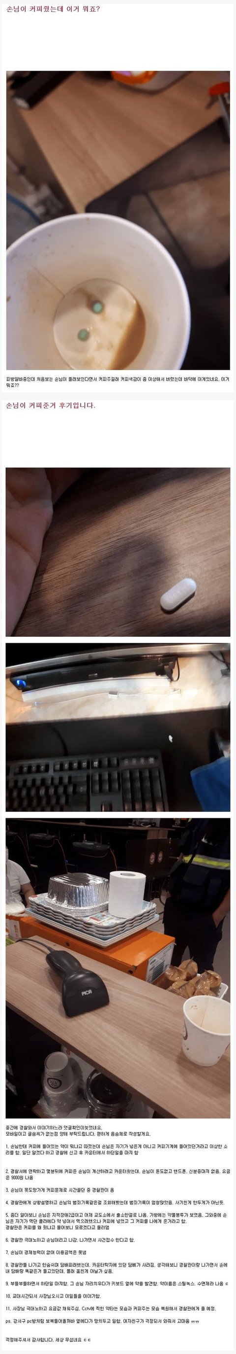 피시방 알바에게 수면제 탄 커피를 준 사람